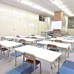 試験中は情報漏洩防止のため、教室玄関を完全に施錠(待合室も利用不可)
